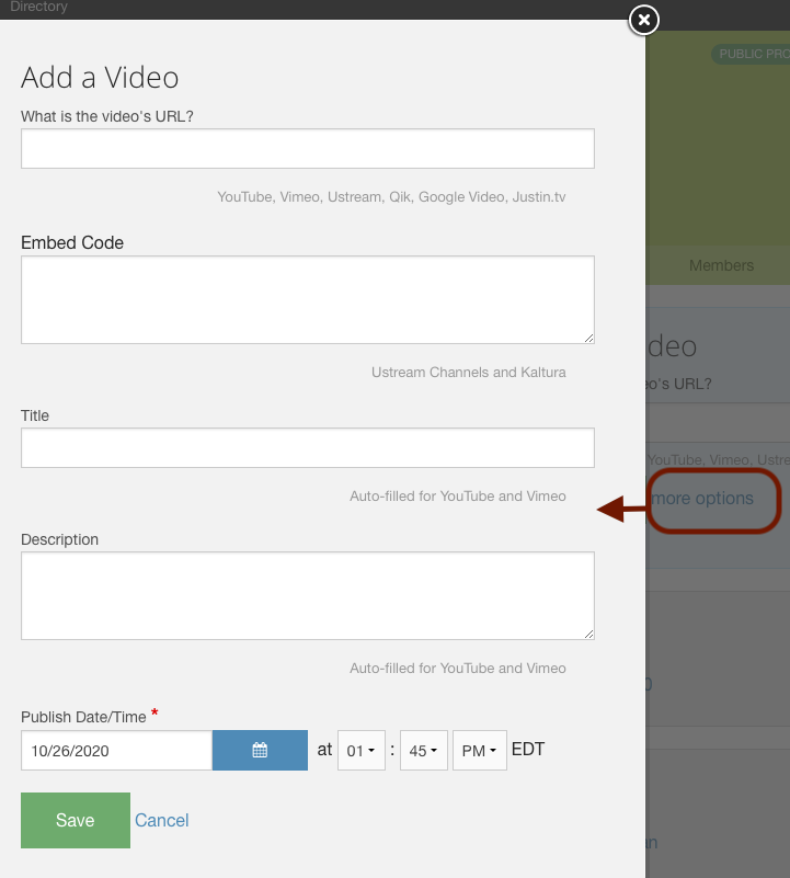 Ticket 70 - In Videos, we resolved the inability to display More Options panel that includes more details about the video such as Titles, Description and Scheduled Publishing.